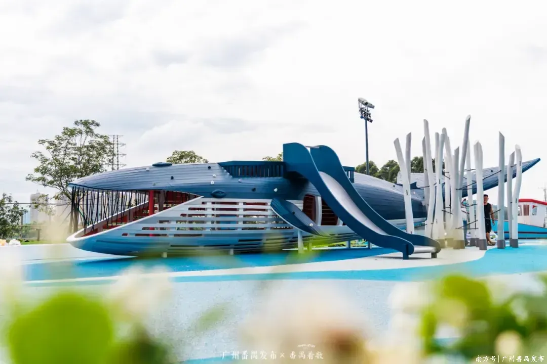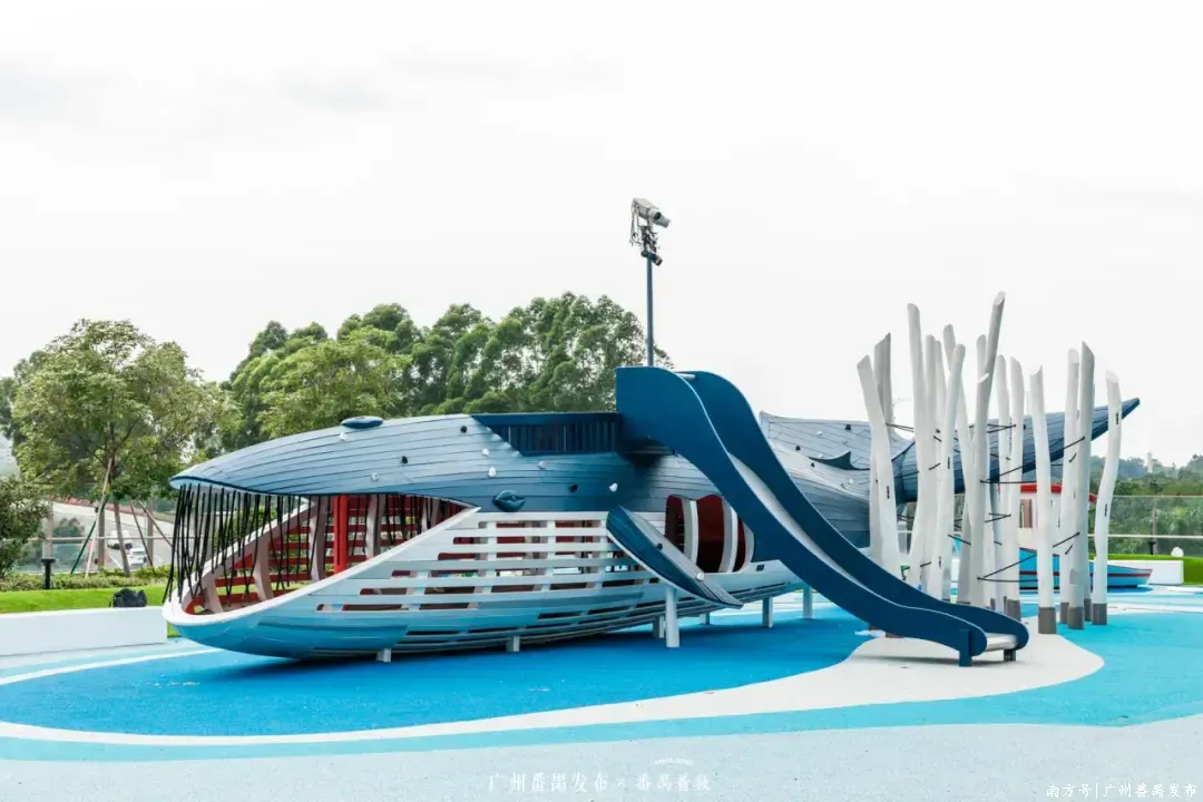 三楼“鲸鱼花园”艺术装置,流线型曲线恰好与珠江的灵动水波遥相呼应,成了番禺家庭周末遛娃的新去处~