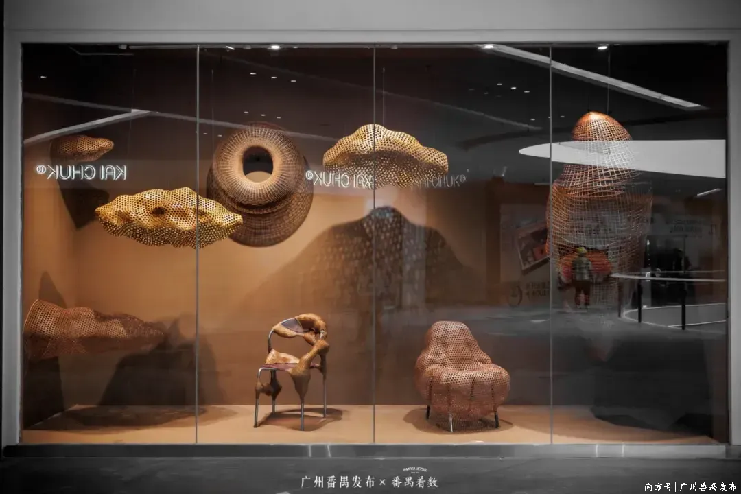 青年艺术家的“非遗竹艺”作品,让人想起沙湾传统竹编——那些精巧的竹编牡丹,恰似在向番禺悠久的园林文化轻轻致意。