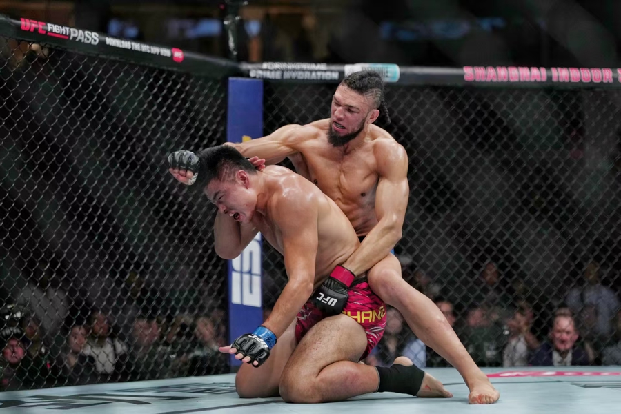 2024年2月,张名扬终于迎来UFC首秀。他在101秒内KO巴西选手里贝罗,拿下中国选手在UFC大级别的历史首胜。随后,他又连续两场首回合终结对手,以100%的KO率跻身轻重量级排名前15,成为亚洲该级别最具竞争力的选手。人们称他“下山虎”,这个外号来自他的父亲:“我爸希望我像猛虎一样去战斗,加上我属虎,就这么叫开了。”