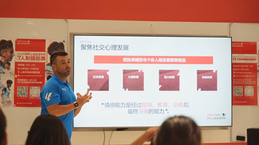 “中国球员训练很多技术层面的内容,如何传球、射门等等,而我们要教会球员如何在场上思考。”在西甲上海足球学院技术总监维克多·坎波看来,中国小球员并不缺少天赋和技术,但需要在策略和综合能力上有更多提升,“因为球场上有无数种攻防选择,需要在瞬时作出最准确的判断,而且胜利源于进攻、防守等多方面、多细节的协同。”